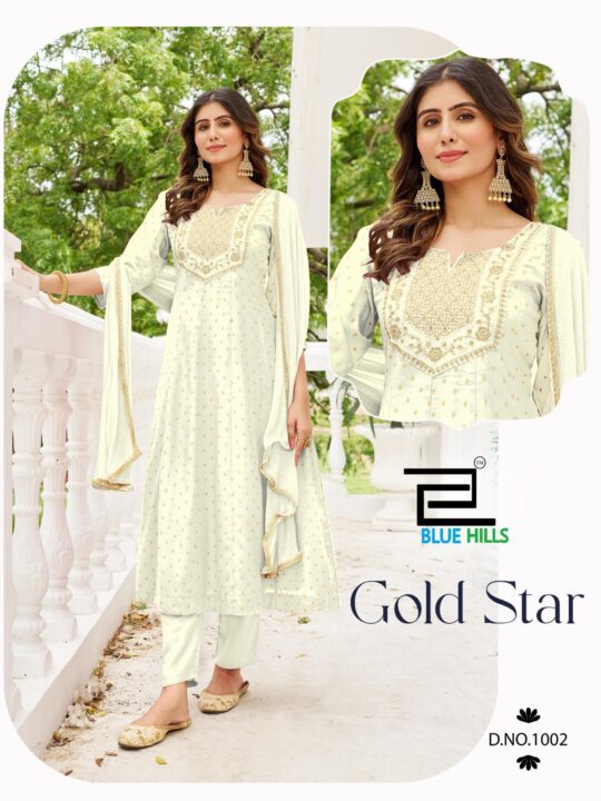 Blue hills gold star present new launching rayon thread embroidery sequence work collection wholesaler and manufacturer in Surat