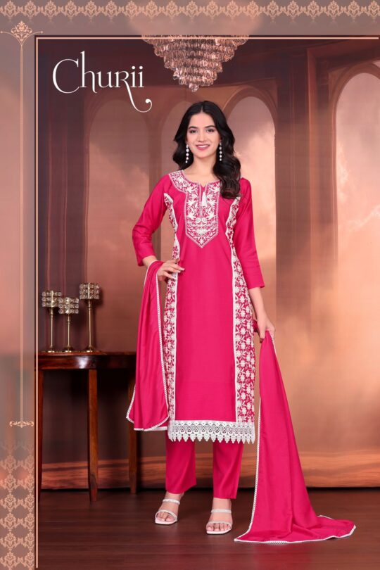 Churii chunri present new launching soft Roman embroidery collection wholesaler and manufacturer in Surat