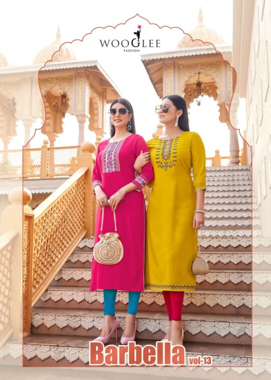 Wooglee barbella vol 13 present new launching heavy rayon thread handwork collection wholesaler and manufacturer in Surat