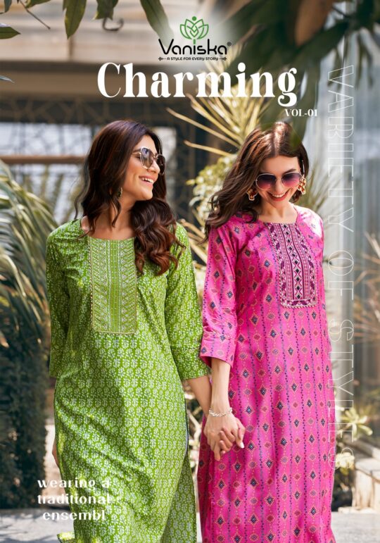 Vaniska Charming vol 1 present new launching heavy rayon foil print collection wholesaler and manufacturer in Surat