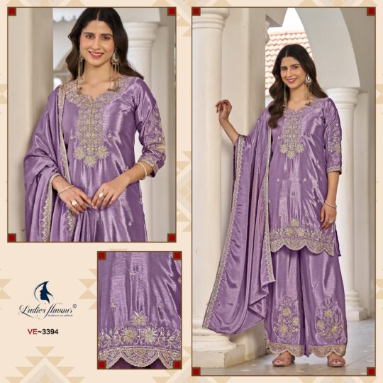Ladies flavour s3392 present New lunching heavy chinon embroidery work with inner collection wholesale and manufacturer in surat
