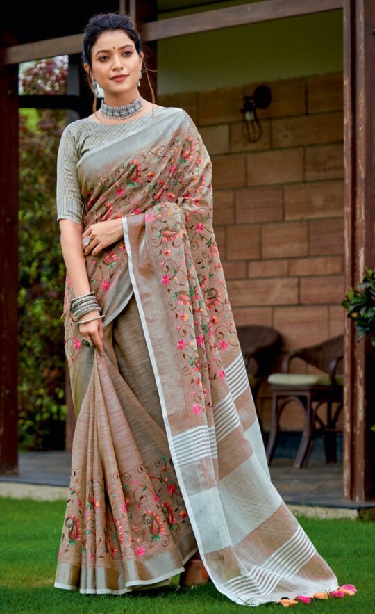PLAIN LINEN SAREE
