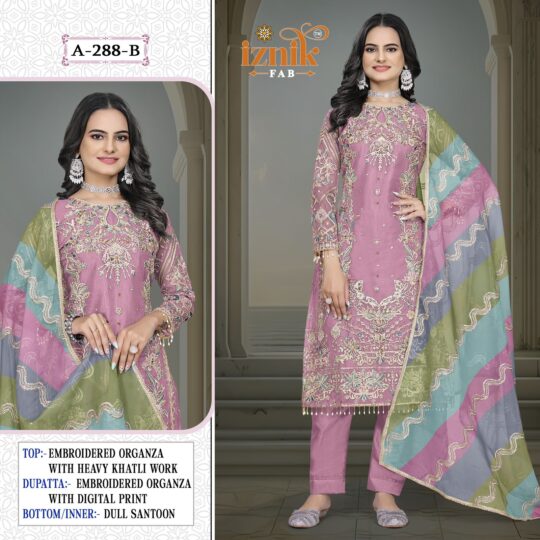 Iznik fab a288 present new launching heavy organza with embroidery collection wholesaler and manufacturer in Surat