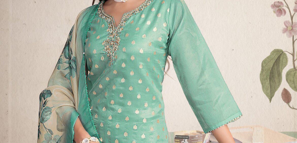 Aanchi mahi present new launching Shimmer jacquard butti collection wholesaler and manufacturer in Surat