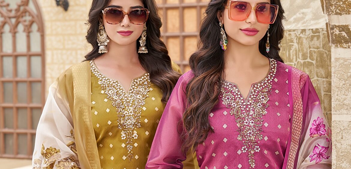 Aanchi devi present new launching pure shimmer jacquard collection wholesaler and manufacturer in Surat