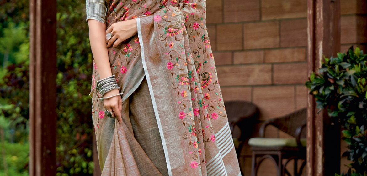 Astita Sindoori saat saree presenting new Linen cotton collection wholesaler and manufacturer in Surat