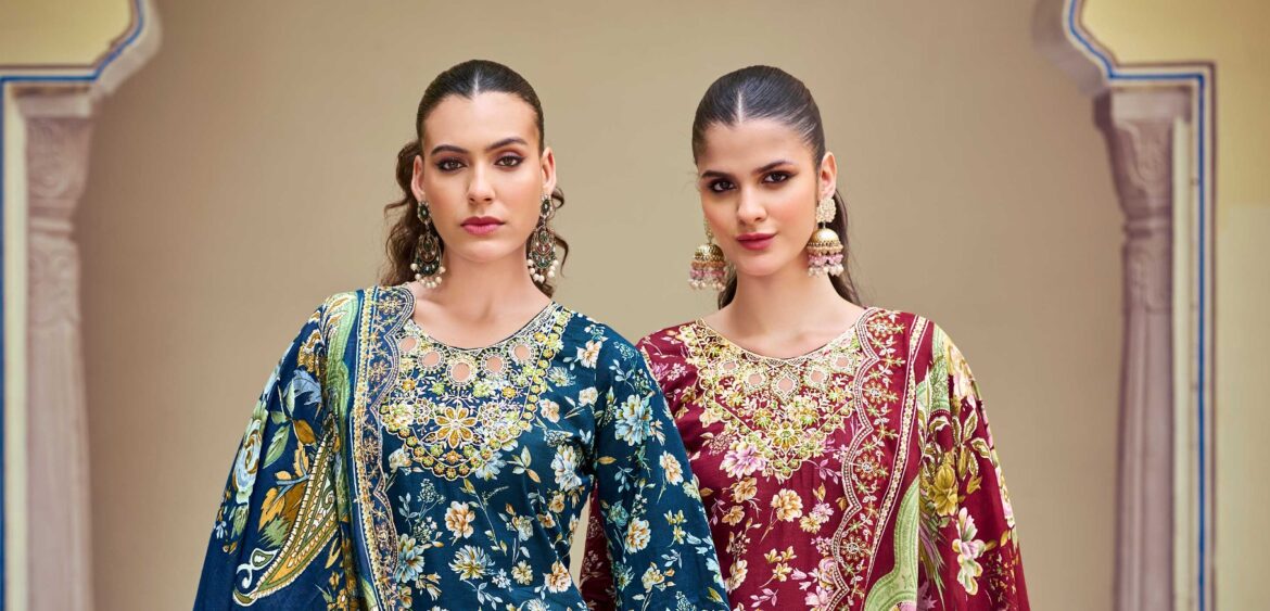 Belliza ruhaniyat present new launching pure viscose rayon embroidery collection wholesaler and manufacturer in Surat