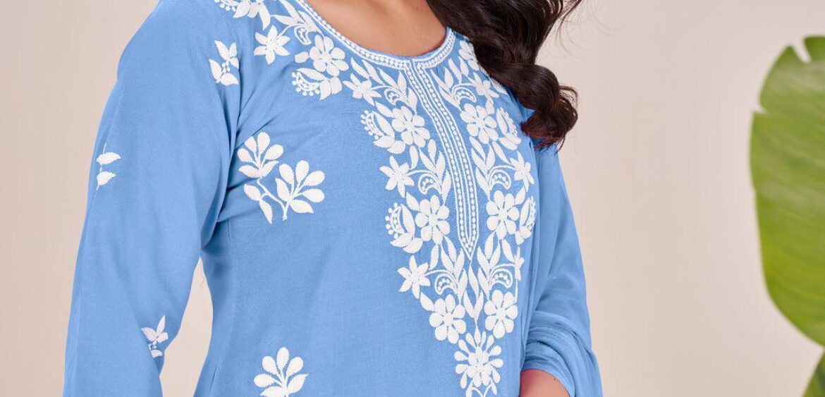 Blue hills summer feels present new launching rayon with embroidery work collection wholesaler and manufacturer in Surat