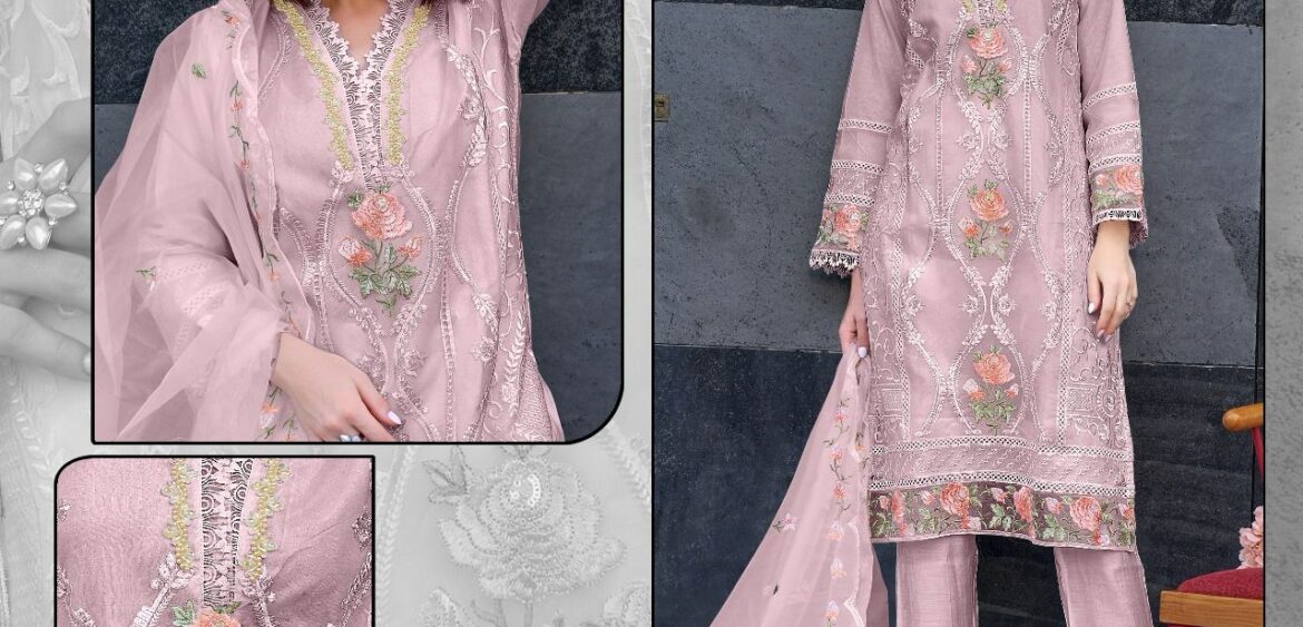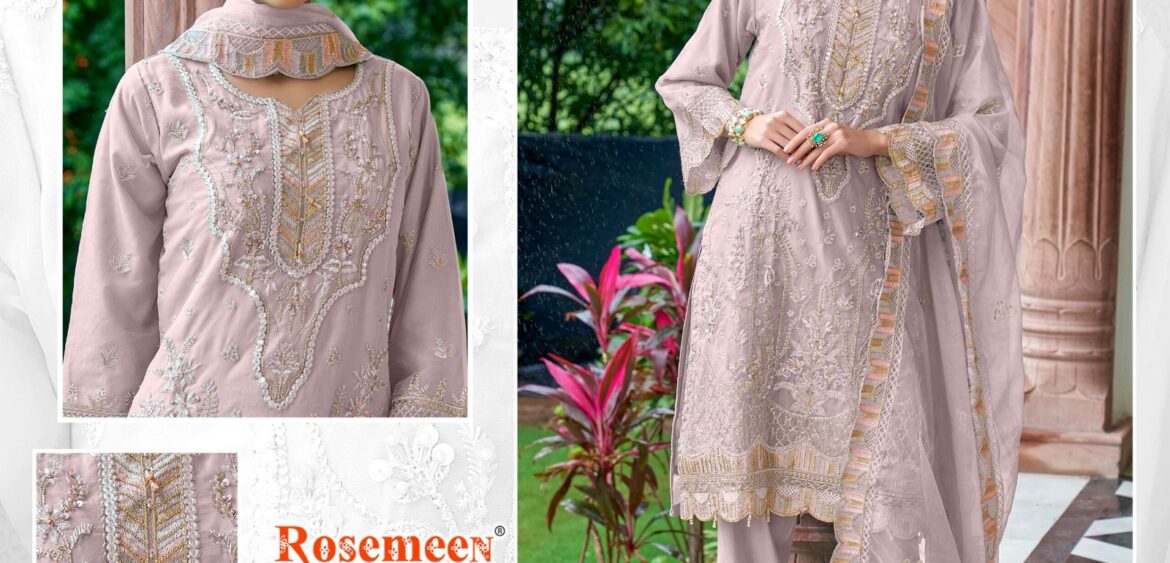 Fepic Rosemeen present new launching organza embroidery work collection wholesaler and manufacturer in Surat