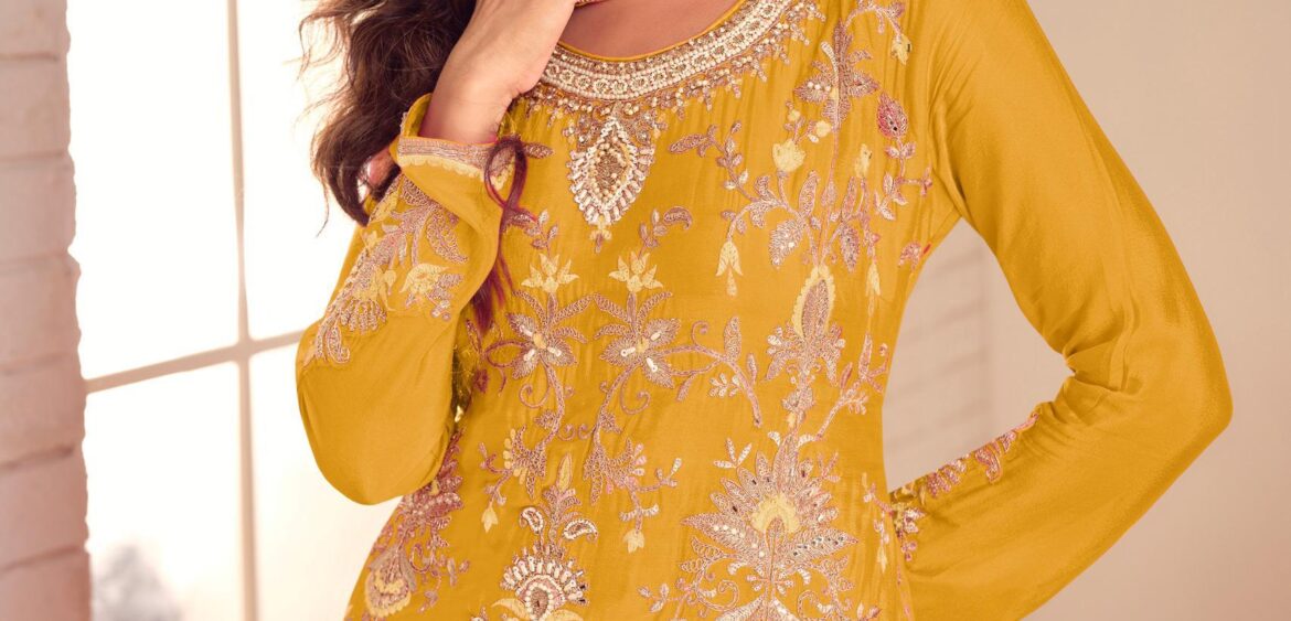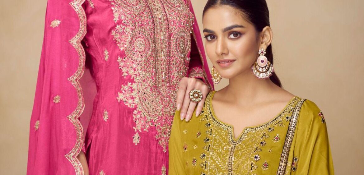 GULKAYRA DESIGNER introducing new collection in sharara suits in real chinon wholesalers and manufacturer in surat