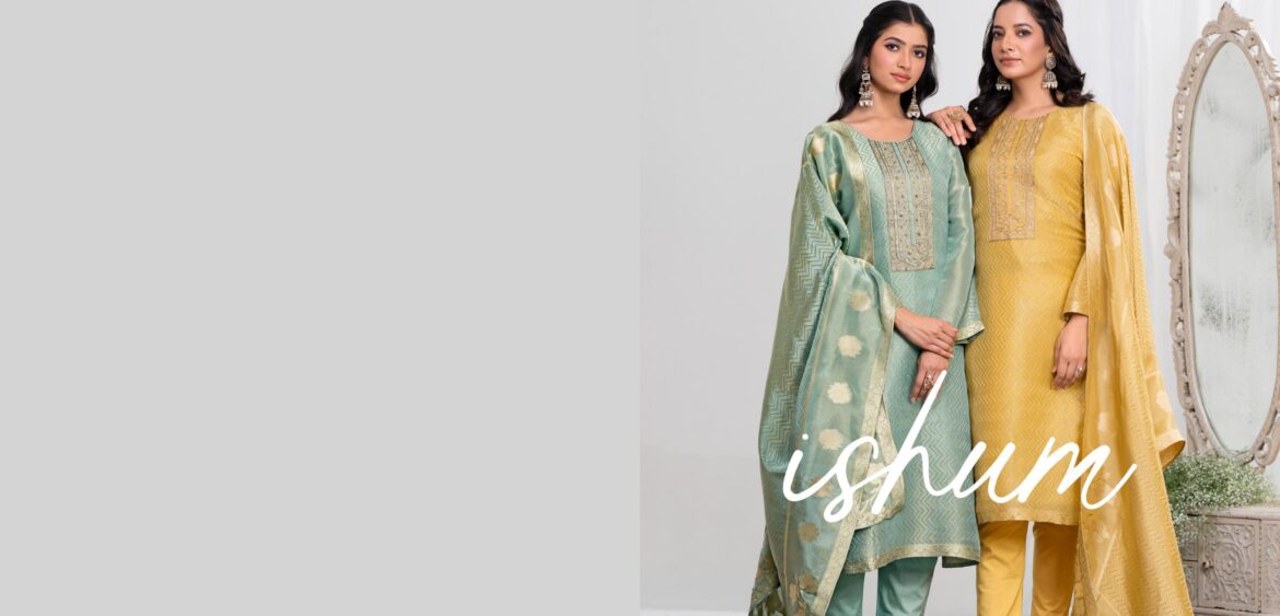 Ibiza ishum present new launching pure shimmer silk embroidery work collection wholesaler and manufacturer in Surat