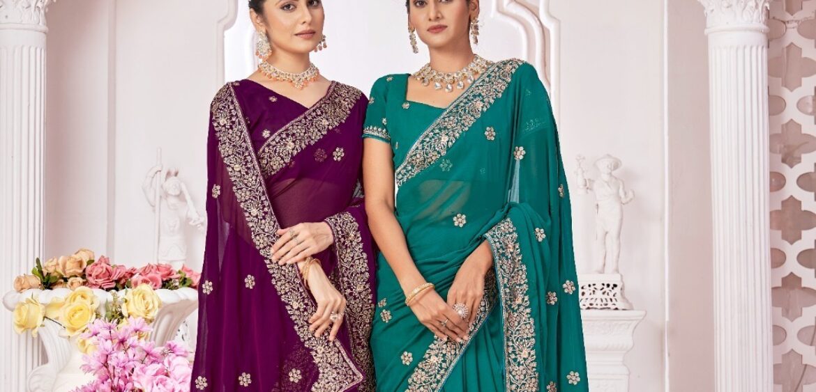 Jayshree 1999 saree presenting new Georgette embroidery collection wholesaler and manufacturer in Surat