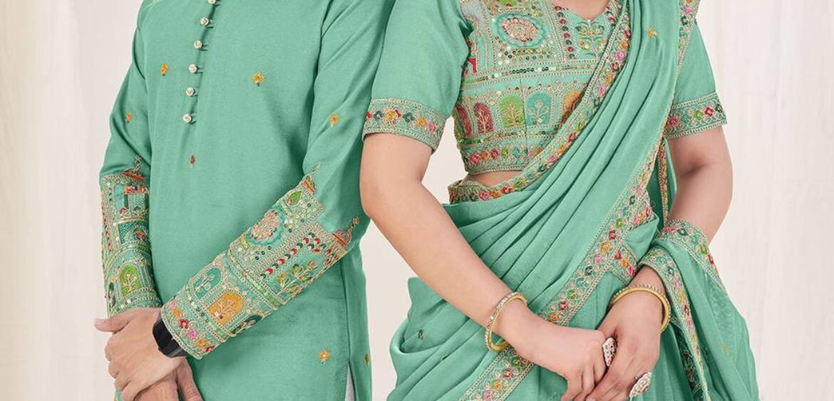MC brand couple 5 present new launching crunchy silk sequence and embroidery work collection wholesaler and manufacturer in Surat