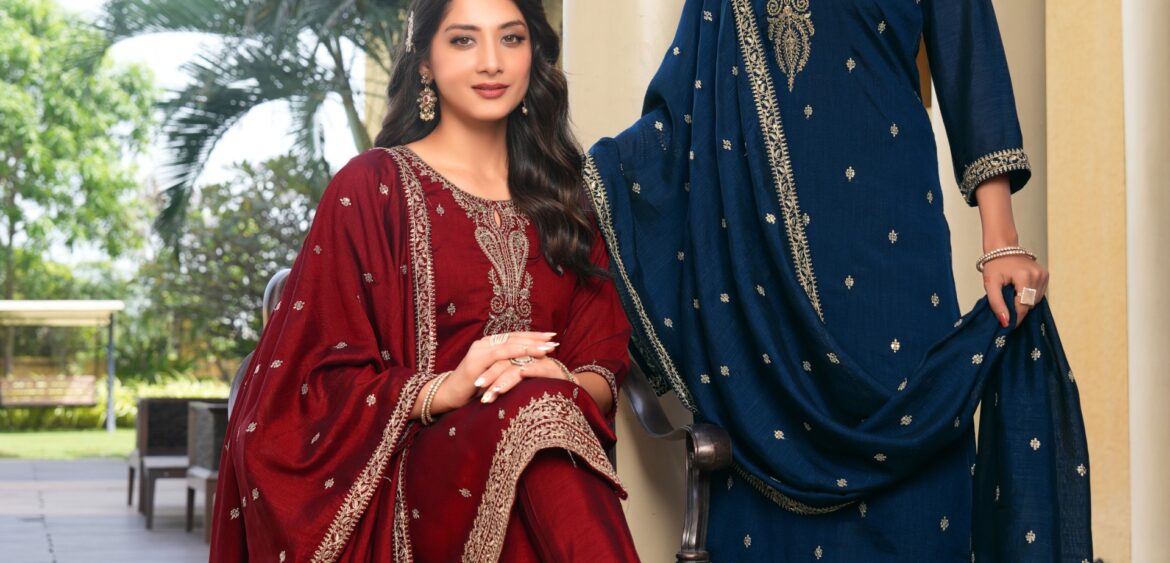 Radha suhagan series no 1181 to 1184 present new launching beautiful collection heavy sarvoski work embroidery with Georgette collection wholesaler and manufacturer in Surat