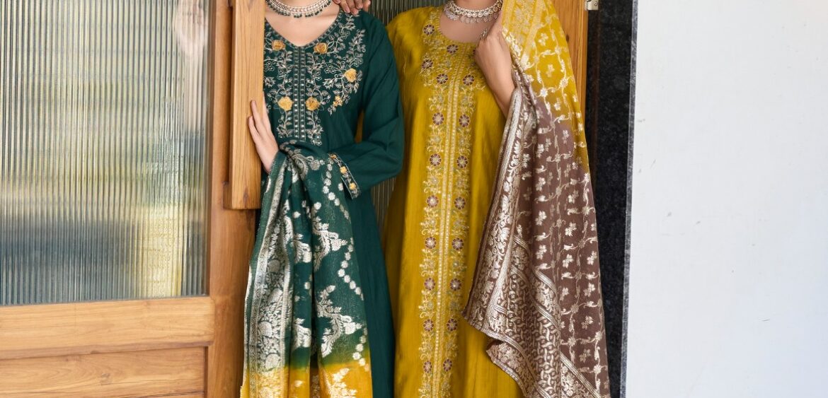 Mystic 9 akshara vol 1 present new launching premium quality vertican dobby embroidery collection wholesaler and manufacturer in Surat