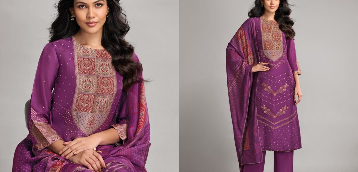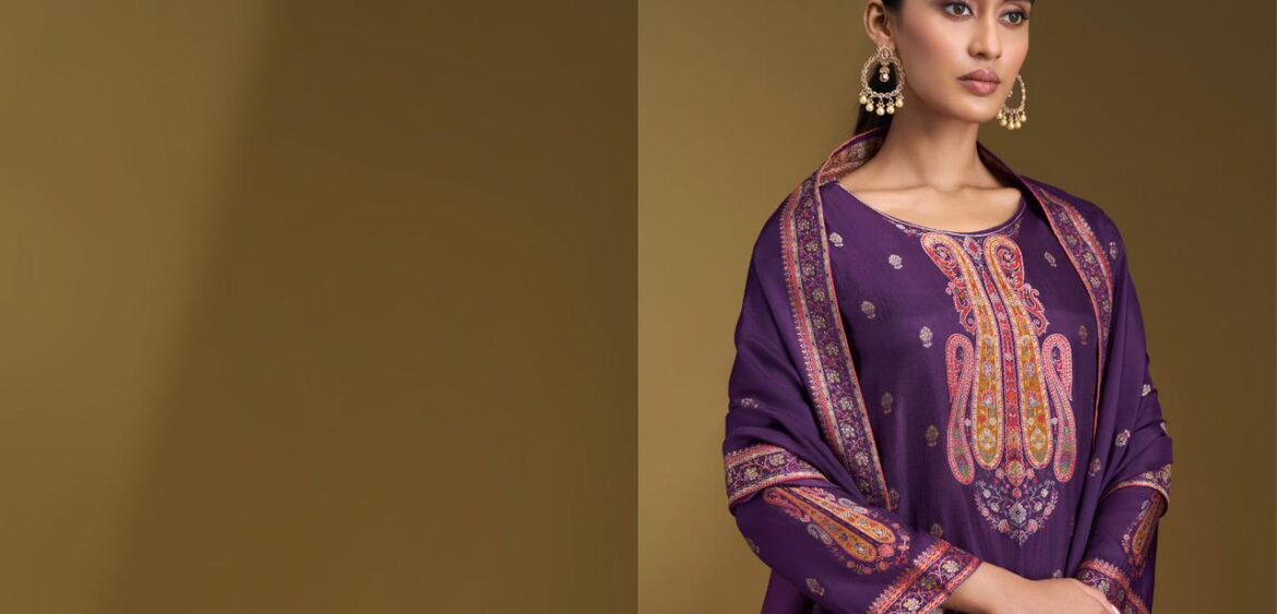 Omtex Sugandha launching new collection suit with silk jacquard work and handwork wholesaler and manufacture in surat