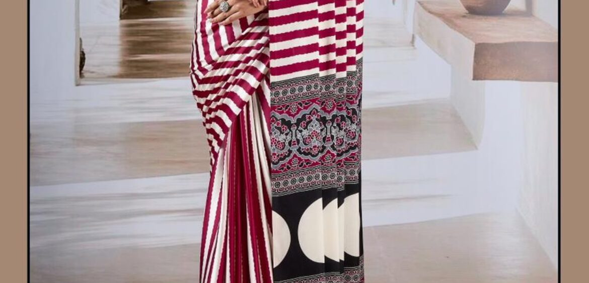 Rajtex prism saree presenting new modal Satin Ajrakh print silk collection wholesaler and manufacturer in Surat
