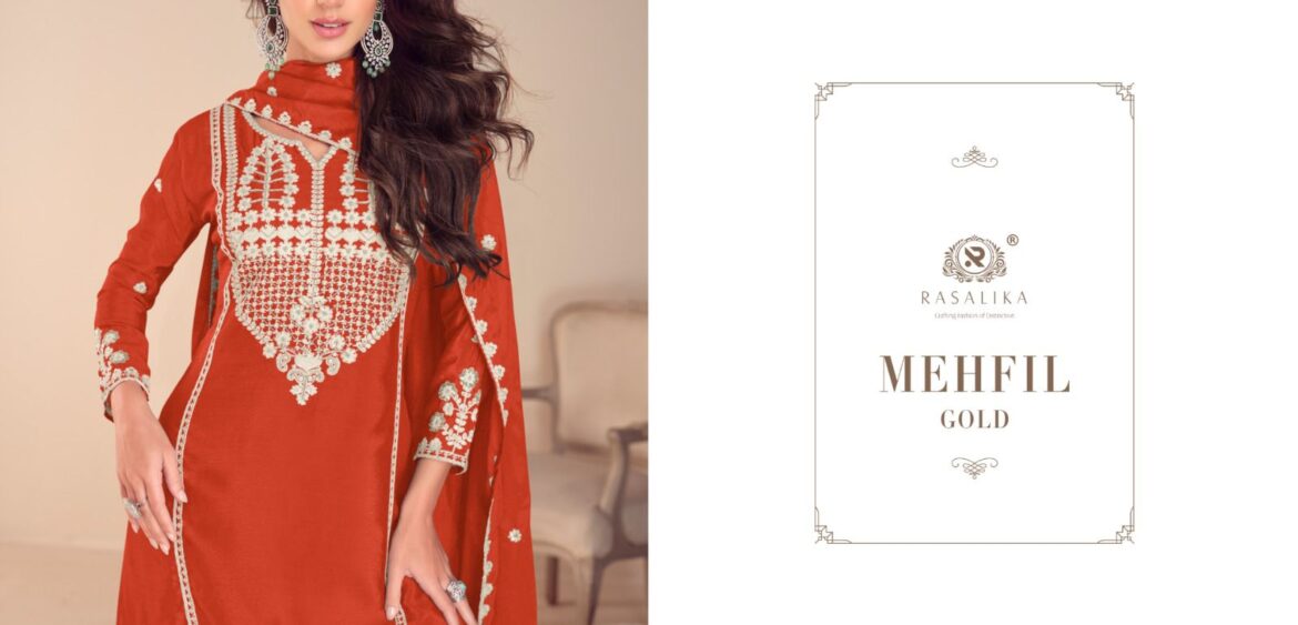 Rasalika mehfil gold present New lunching real chinon silk collection wholesale and manufacturer in surat