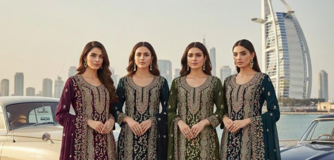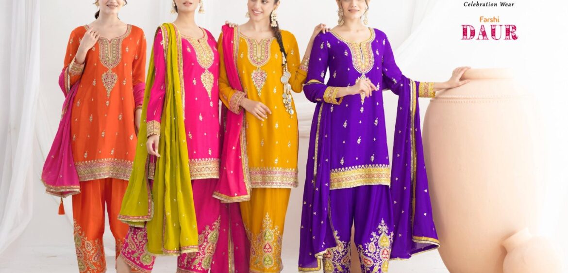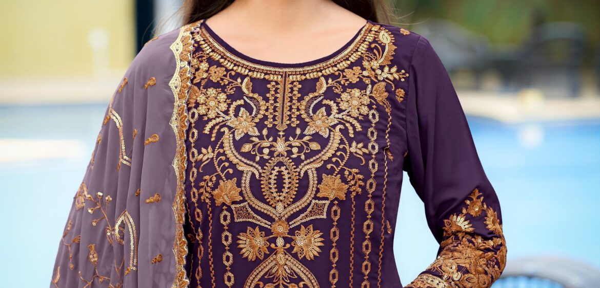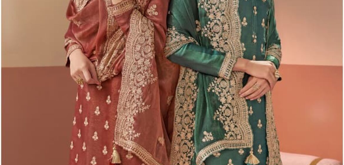 Kuleesh kalika present New gold Silk heavy embroidery work collection wholesale and manufacturer in surat