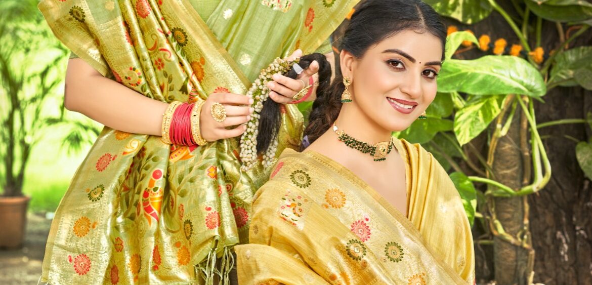 Bunawat nikhila present new launching silk with weaving weaving work collection wholesaler and manufacturer in Surat