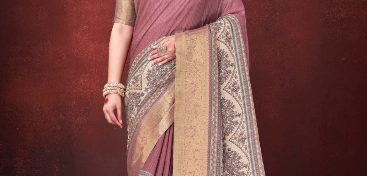 Bunawat Bindiya saree presenting new linen work collection wholesaler and manufacturer in Surat