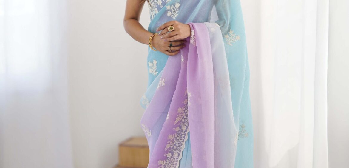 Astita Sindoori saat saree presenting new Linen cotton collection wholesaler and manufacturer in Surat