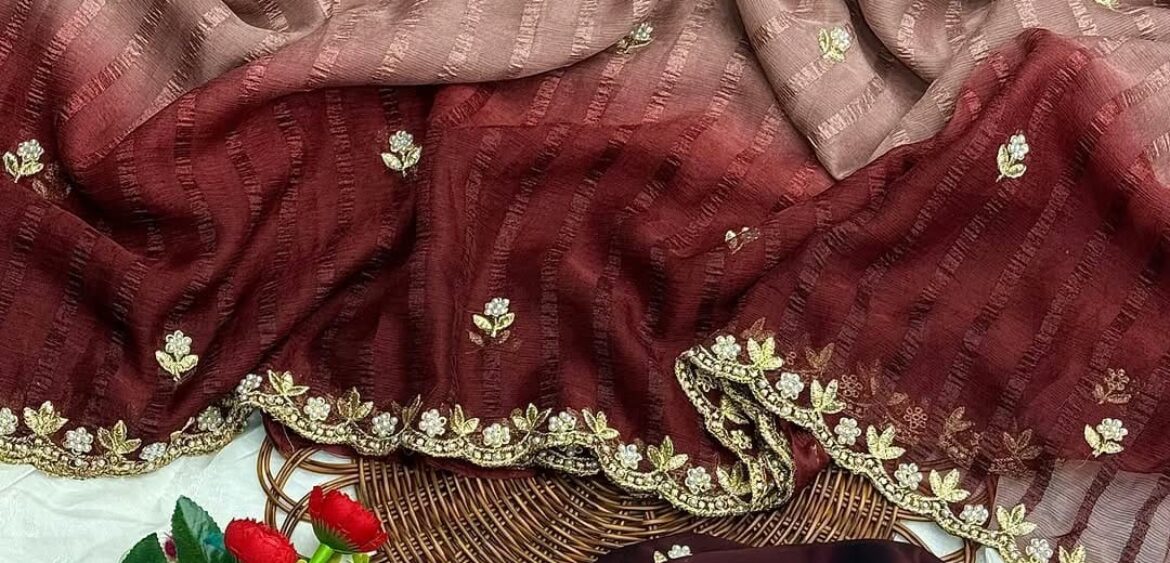 Stavan juery saree presenting new collection heavy burberry fabrics with fancy embroidery Collection wholesaler and manufacturer in Surat