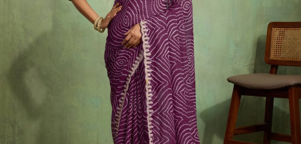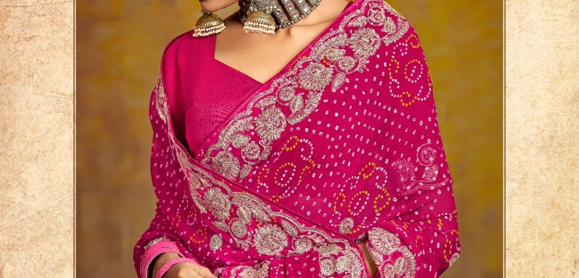 Stavan bandhniya saree presenting new Georgette fancy embroidery border collection wholesaler and manufacturer in Surat