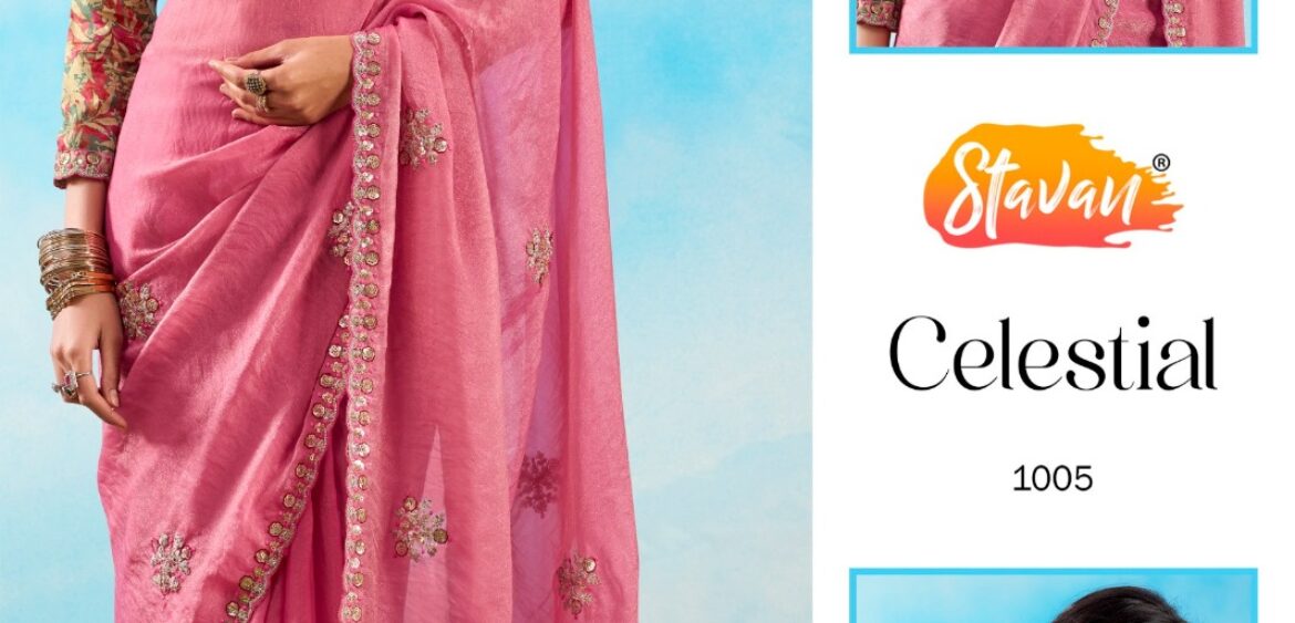 Stavan celestial saree Presenting new fancy fabric with embroidecry work collection wholesale and manufacturer in surat