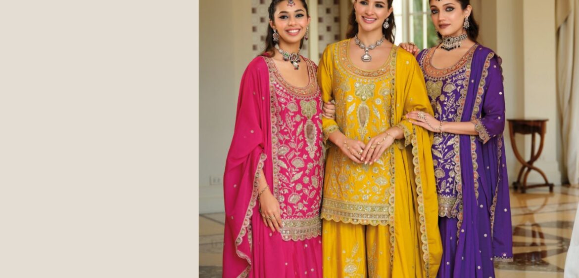 Ledies flavour d3373 present New lunching heavy vichitra blooming embroidery work collection wholesale and manufacturer in surat