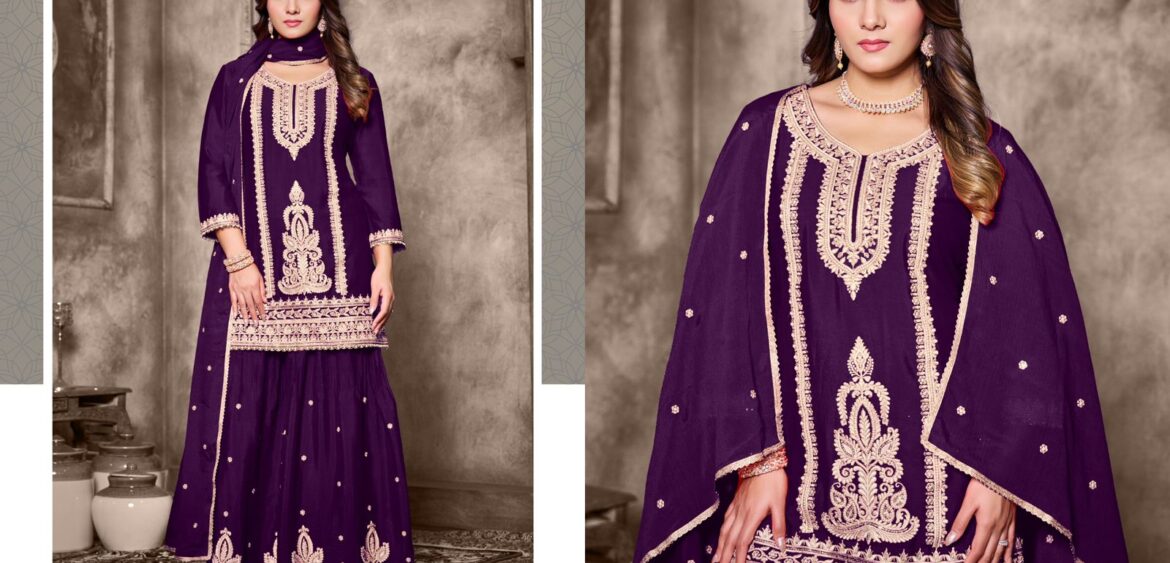 Vamika sarathi vol 1 present New lunching heavy chinon with work collection wholesale and manufacturer in surat