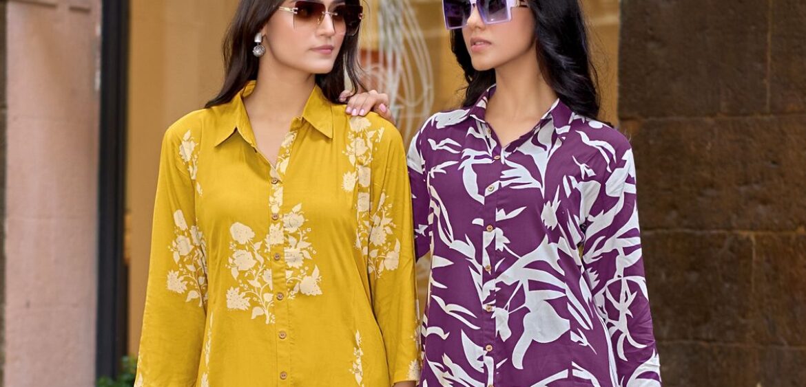 ZOORI Alexa new launching cord set kurti Rayon Print fabrics 2 pics wholesaler in surat