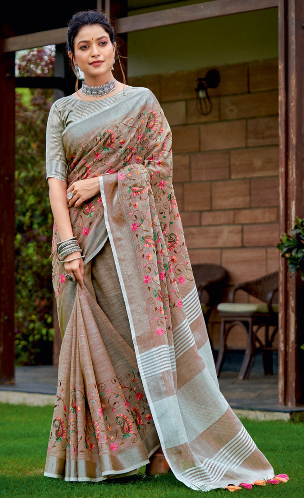 Bunawat kashmira style saree presenting new linen collection wholesaler and manufacturer in Surat