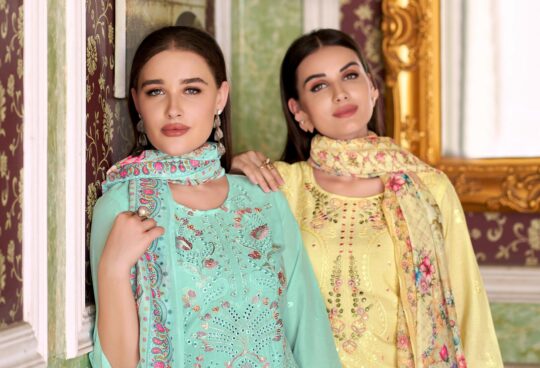 *MARIAB LUXE 25-2 by DEEPSY SUITS* Top – Viscouse Rayon with heavy self embroidery attached emb patches & handwork Bot – Rayon solid Dup – cotton print Pcs: 5 *Rate – 1199( cotton dup) *_Splendid Quality With Digitally Printed Fabric_* *_Quilted Fabric Used For best quality results_* |