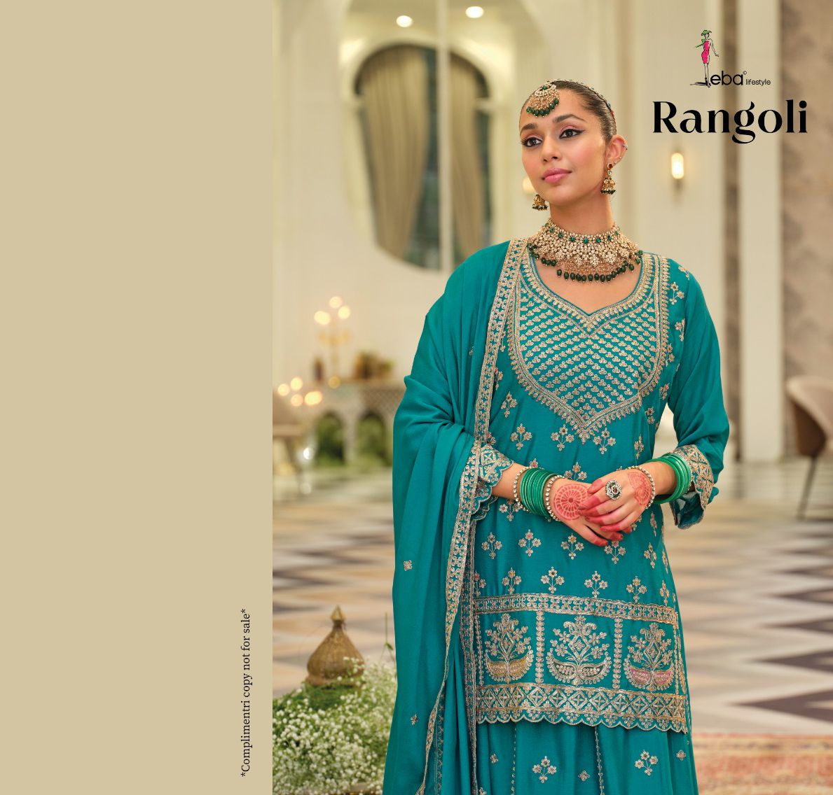 Eba lifestyle rangoli present new launching heavy chinon with embroidery work collection wholesaler and manufacturer in Surat