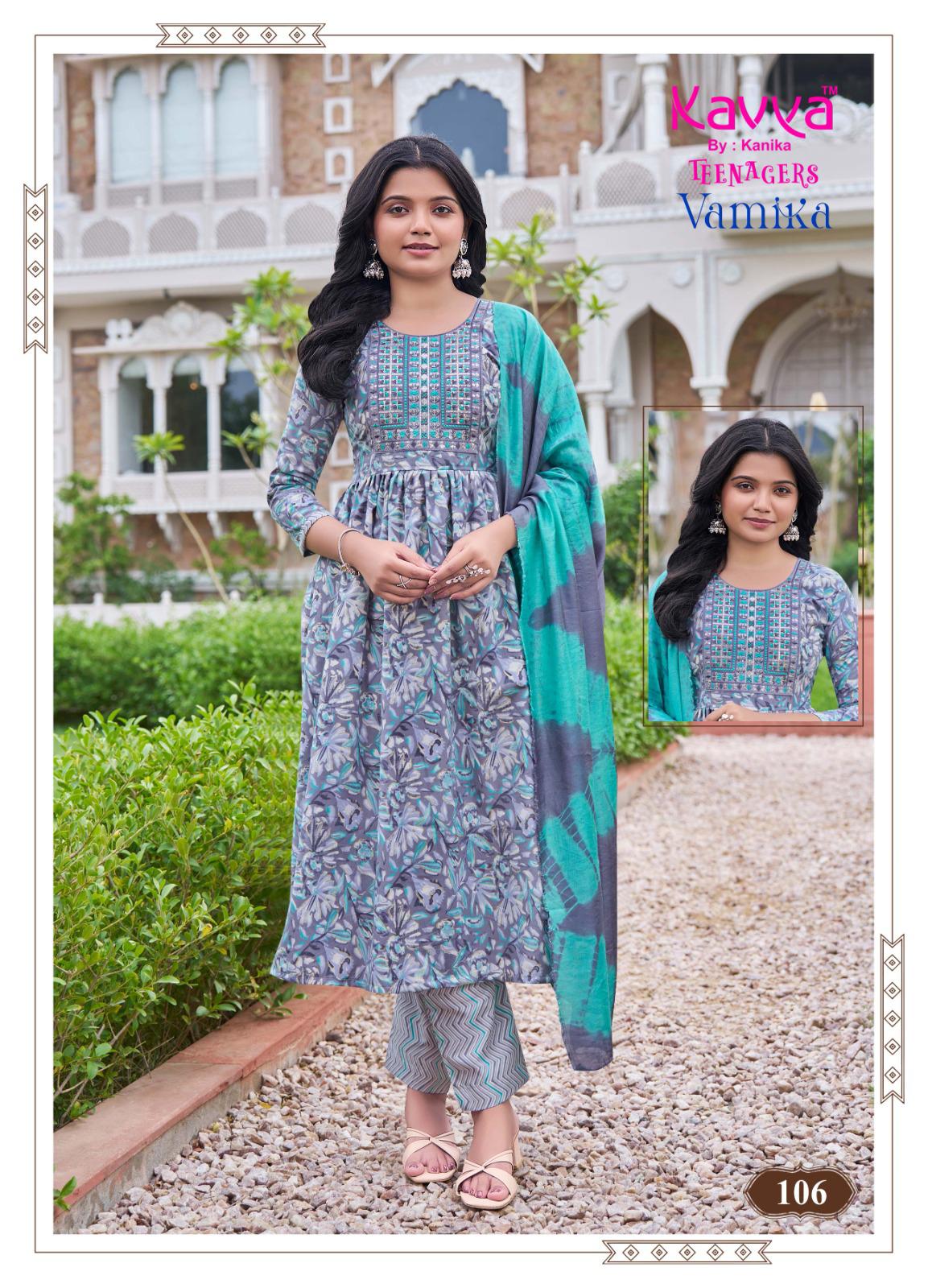 *Launching NEW catalouge* *KAVYA VAMIKA* *STYLE -: TEENAGERS UMBRELLA CUT* *FABRIC* : POLY VISCOSE foil print top and print bottom with chanderi cotton dupatta *Top* : Embrodiery on neck *bottom* : Comfort fit premium quality stiched pants Size:- 32, 34, 36 and 38 *Price. 425/-* |