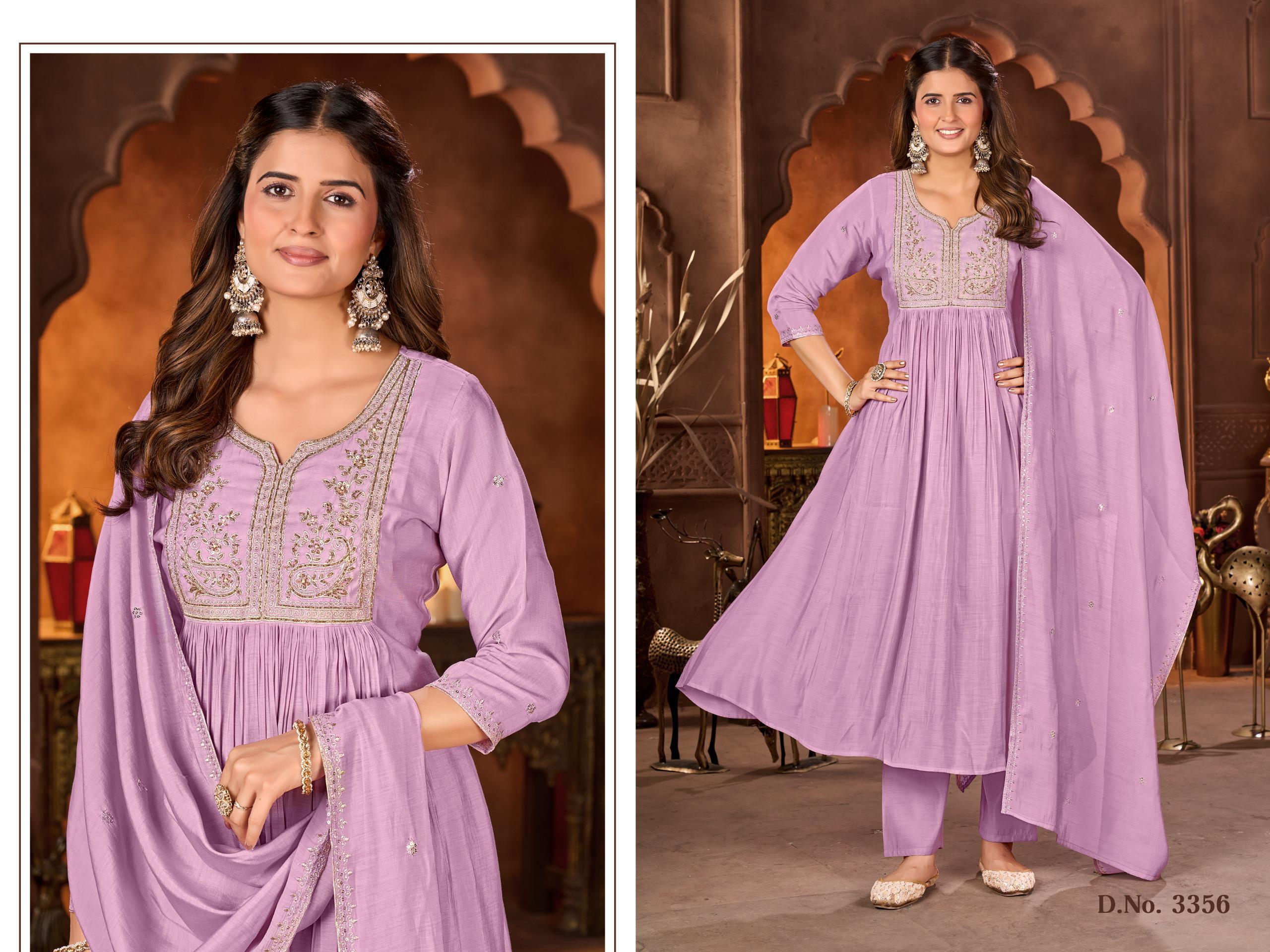 ๐ฎ๐ณ*Ladies Flavour*๐ฎ๐ณ *D.no*:*3356 & 3357* *Rate* -*1375/-* *D.no*:*3358 to 3360* *Rate*-*1355/-* *D.no.*:*3365 to 3370* *Rate*- *1395/-* *Detail of fabric* *Top:- *Mull Chanderi Handwork With Cotton Inner* *Bottom*:- *Roman* *Dupatta*:-*Mull Chanderi With Embroidery work* *Size* – *M(38),L(40),XL(42),2XL(44)* *Regards* |