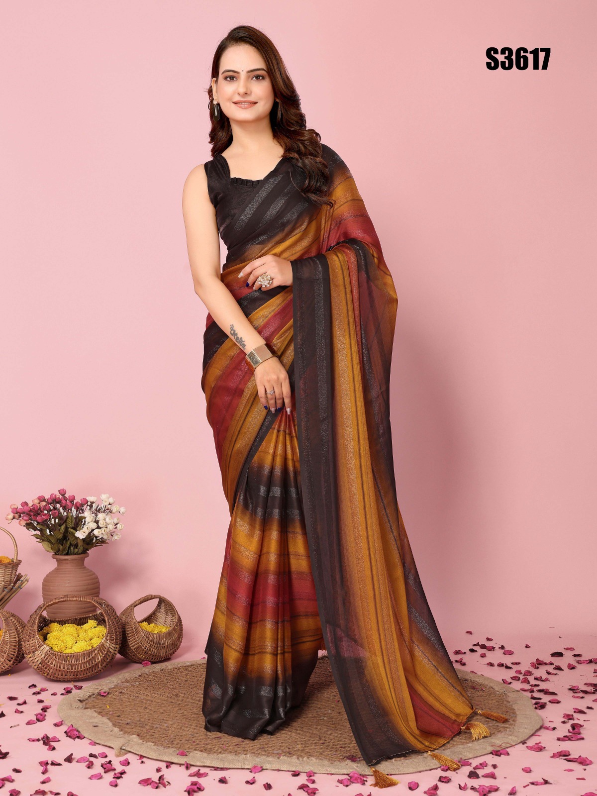 *♻ OUR NEW PARTY WEAR READY TO WEAR SAREE COLLECTION ♻️* *CATALOG NAME: KAYA* *PRICE:-* *899+5% GST EXTRA* *SAREE FABRIC: – Rangoli Silk* *BLOUSE FABRIC: ART SILK* *WORK: Wevon Designer, Printed* *SAREE TYPE: READY TO WEAR* *BLOUSE TYPE: UNSTITCHED* |
