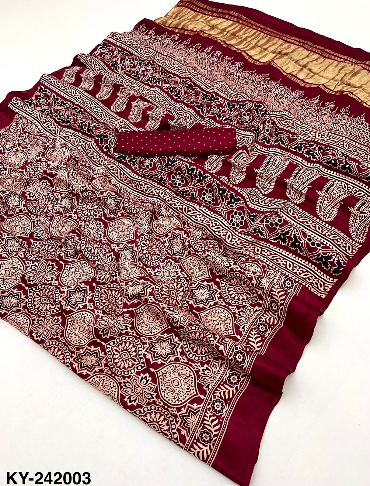 MC brand keya saree presenting new pure model Ajrakh print collection wholesaler and manufacturer in Surat