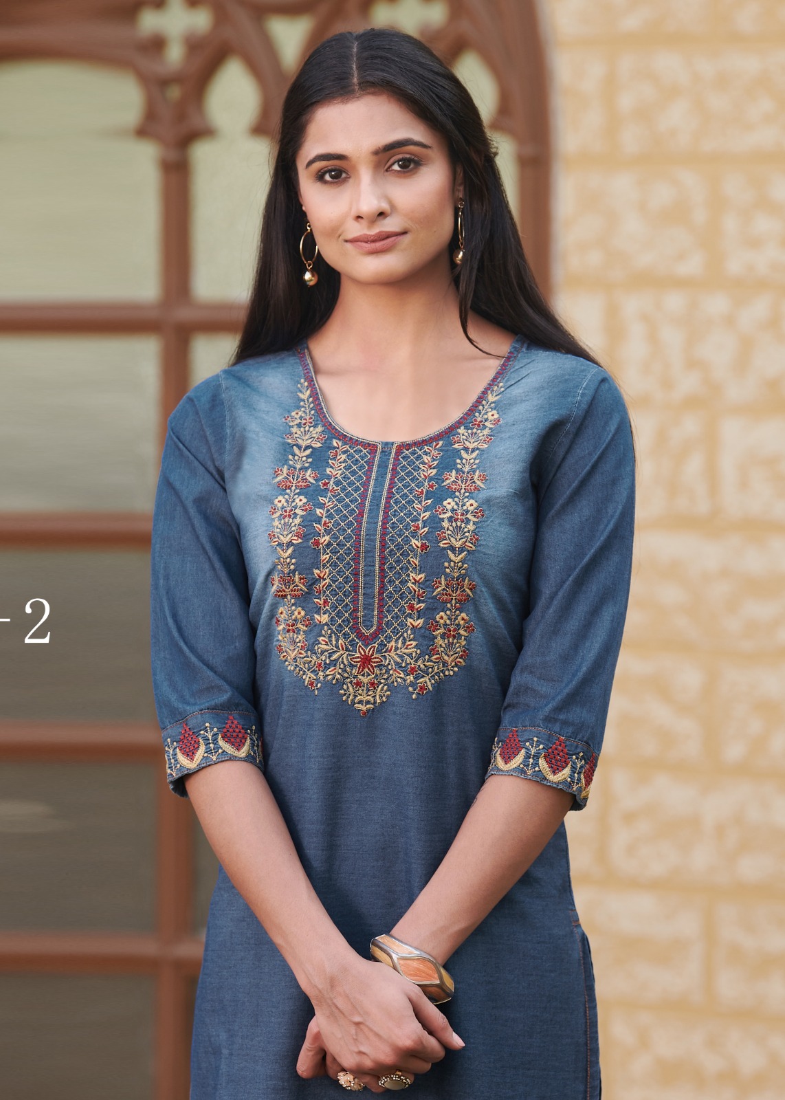 *NEW LAUNCH* 🔥🔥 *SERIEMA®️* proudly launches its NEW collection COMPLETELY WESTERN FASHION….. SERIMEA Always rock & Have limited stock *Catalogue name* ✨DetailsFabrics –: *BOTTOM- PURE 100%COTTON DENIM WITH HEAVY PAYAL WORK* *DIFFERENT SHADES OF DENIM WITH TOP & PANT* *LENGTH OF TOP -: 38* SIZE : *M* *L* *XL* *XXL* *3XL* *Price:- 1299/- ready to Dispatch |