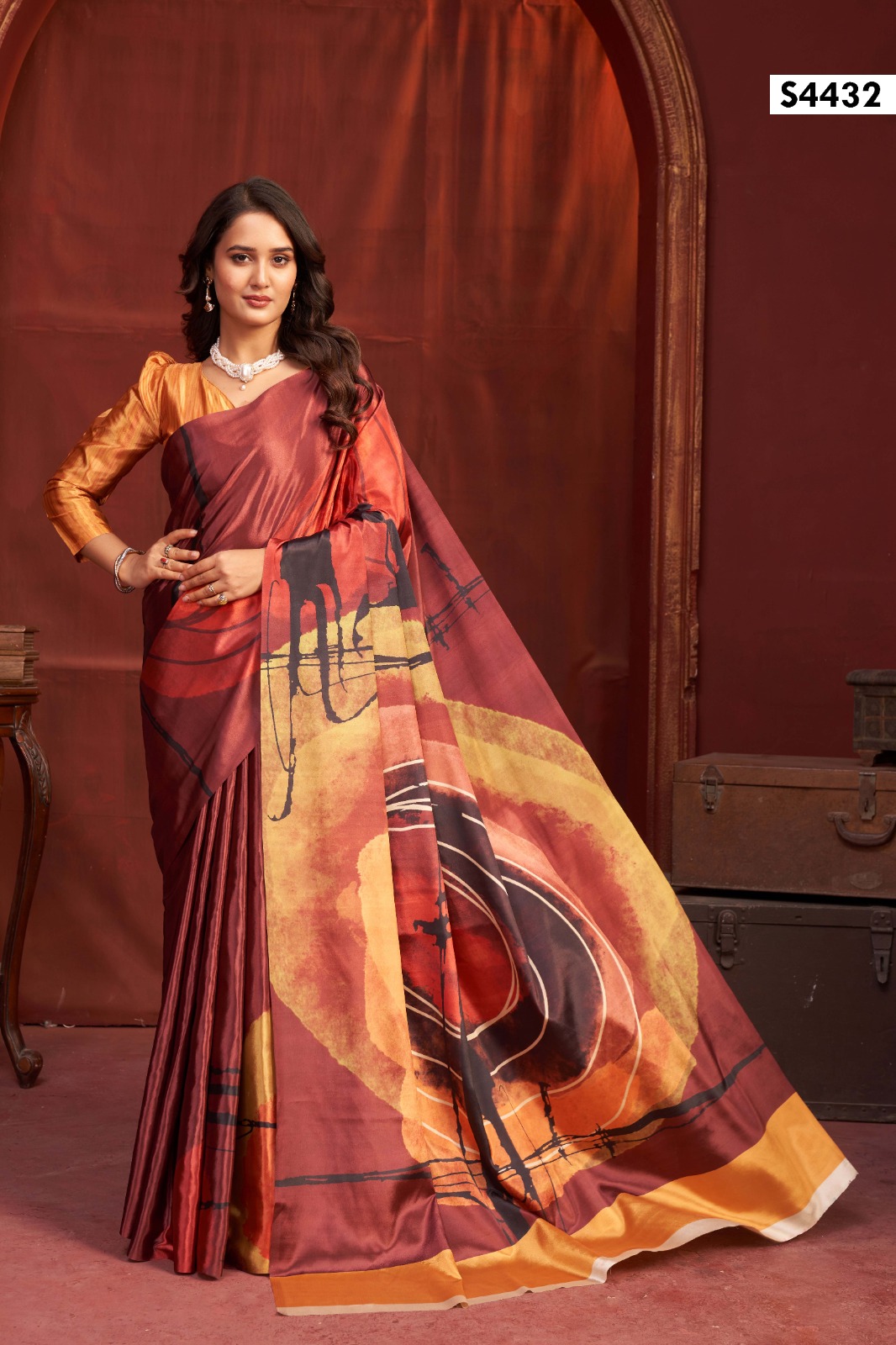 *♻ OUR NEW FESTIVE WEAR SAREE COLLECTION ♻️* *CATALOG : PAVITRA* *PRICE :-* *1399*+*5% GST EXTRA* *FABRIC -: Malai Crepe Silk* *WORK: Designer Digital Printed* *BLOUSE TYPE: UN-STITCHED* |