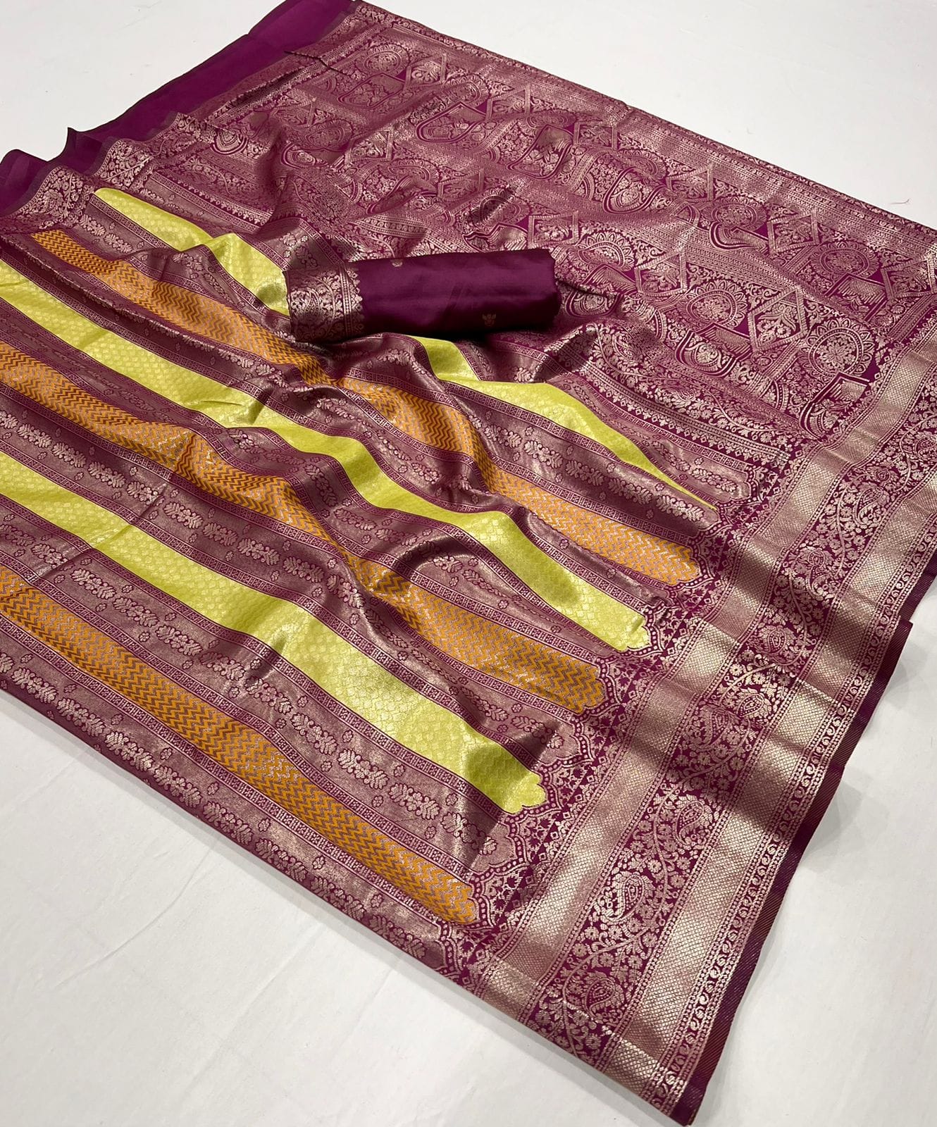 *Fabric*- *Kanjivaram silk Saree with elegant Weaving multi color lining on all over the saree Weaving border on either side Rich & Elegant Weaving Pallu as shown* ๐ฐPRICE:- *950 INR GST EXTRA* ๐ Book Fast *๐We always trust in Quality* |