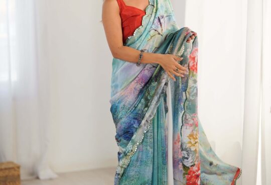 *SAYURI DESIGNER* *INDIRA (3 PCS)* FABRIC – PREMIUM REAL CHINON SILK / PREMIUM REAL SILK ( HEAVY LOOK FRONT AND BACK EMBROIDERED WITH CANCAN ) *PRICE -2899* |