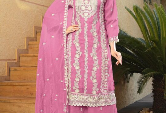 *SAYURI DESIGNER* *WONAYA (4 PCS)* FABRIC – PREMIUM REAL CHINON SILK ( HEAVY EMBROIDERED SHRUG WITH HAND EMBELLISHED WORK BLOUSE AND PLAZZO ) *PRICE -2299* |