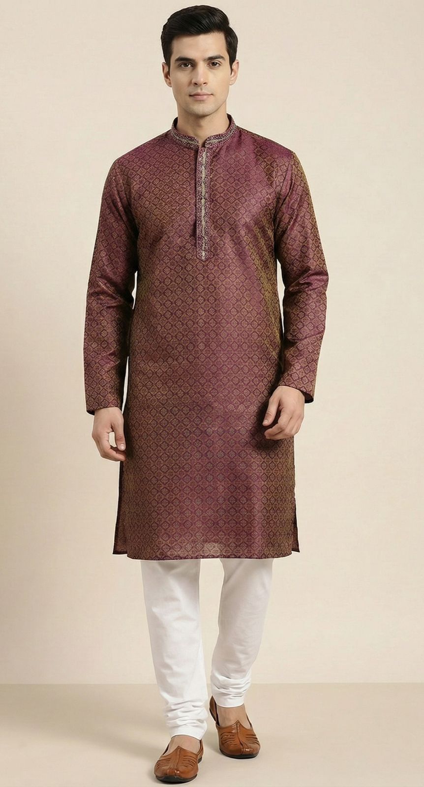 _Designer Pinterest jacquard kurta collection_✨ Brand – Venmer®️ Fabric – Heavy Jacquard silk with self design and tie – collar embroidery work Pyjama – Raymond Cotton Size:- 38, 40, 42, 44 *Kurta Pyjama Rs. 650/- + ship* Ready stock |