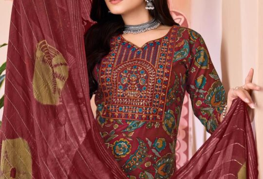 *Anaya* *Top – soft organza embroidery work* *Dupatta- soft organza with embroidery* *Bottom- heavy silk* *SIZE – M(38) L (40) XL(42) XXL(44) 3XL (46)* *RATE – 1799/-* |