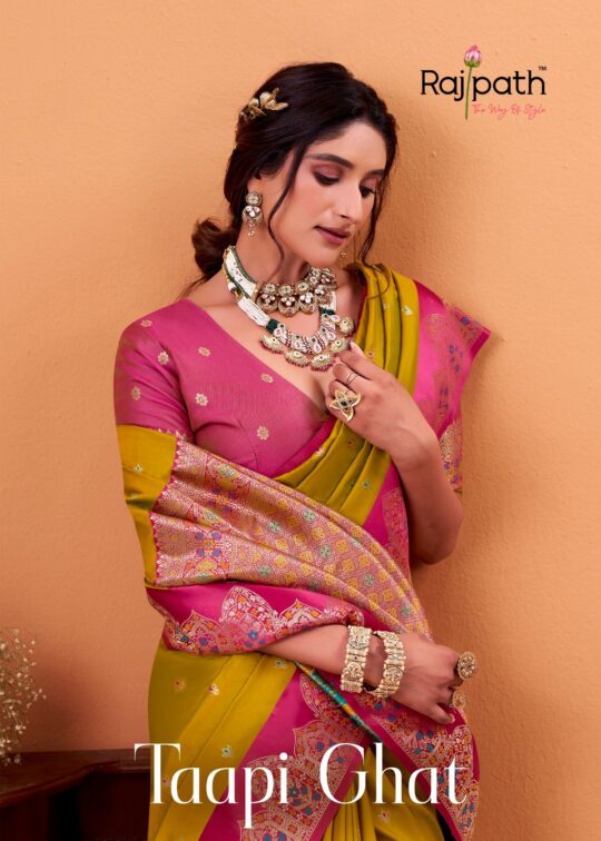 Rajpath fabrics taapi ghat saree presenting new soft satin silk collection wholesaler and manufacturer in Surat