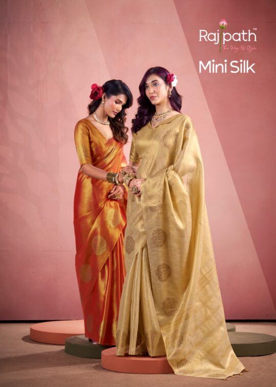 Rajpath fabrics mini saree presenting new tissue fancy weaving collection wholesaler and manufacturer in Surat