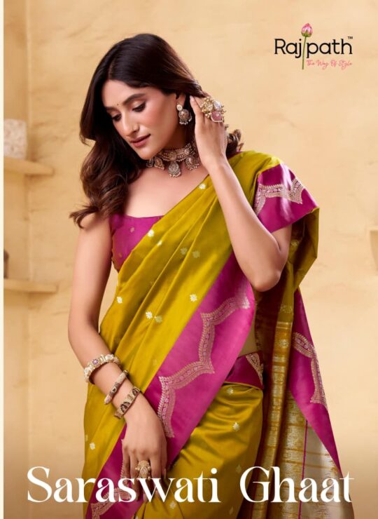 Rajpath fabrics saraswati ghat saree presenting new soft satin silk collection wholesaler and manufacturer in Surat