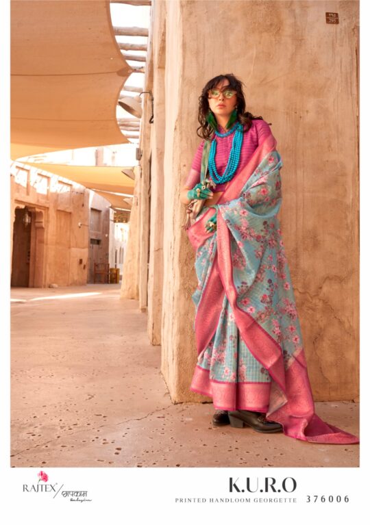 Rajtex K U R O saree presenting new Georgette print handloom collection wholesaler and manufacturer in Surat